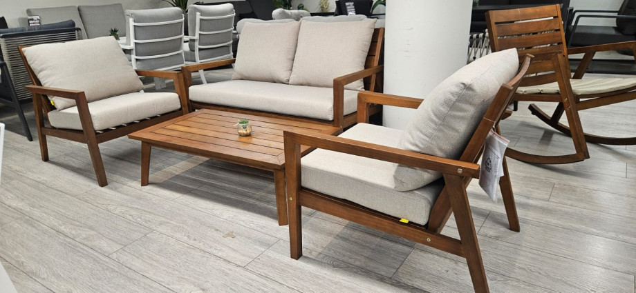 מערכת ישיבה מעץ 2+1+1 עם שולחן